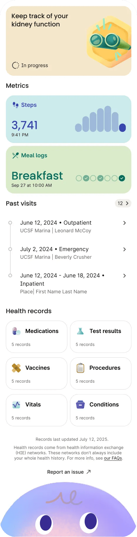 Your always-on AI companion gives you personal, private answers to questions about your health record.